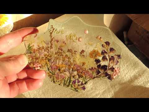 Тарелочка из сухоцветов в эпоксидной смоле.